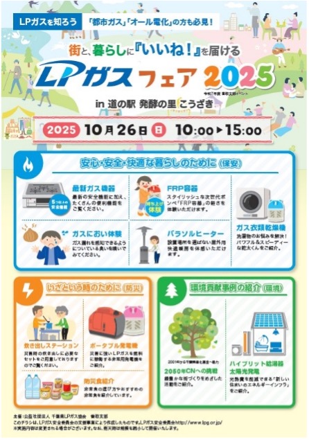 令和7年10月26日(日)、道の駅発酵の里こうざき(香取郡神崎町松崎855)にて「LPガスフェア2025~街と暮らしに『いいね!』を届ける~
