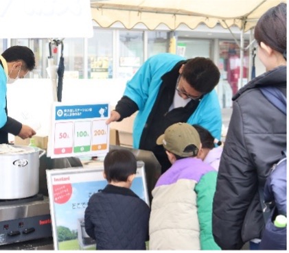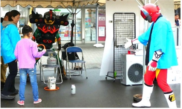 「火(保安)」のブースでは、LPガスの匂い体験、ガス衣類乾燥機やモスキートマグネットなどの展示、FRP容器と鋼製容器の持ち比べ体験、「雷(防災)」のブースでは、炊き出しステーションやLPガス放出防止機器立体モデル・LPガス発電機の展示、「木(環境)」のブースでは、カーボンニュートラルに対応した高効率ガス機器の展示をしました。
