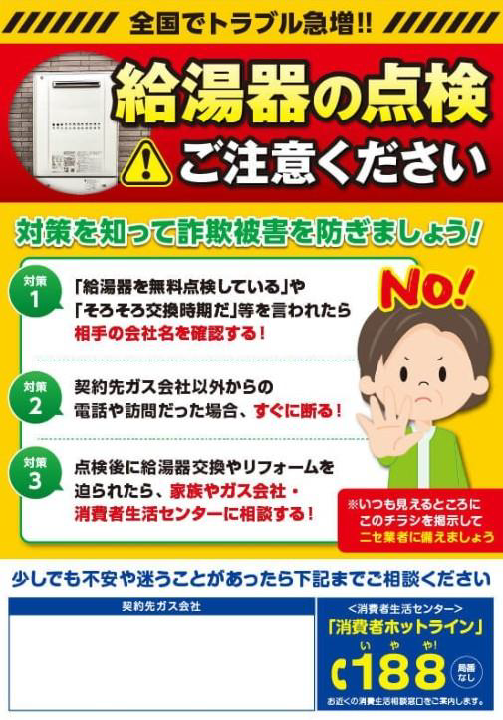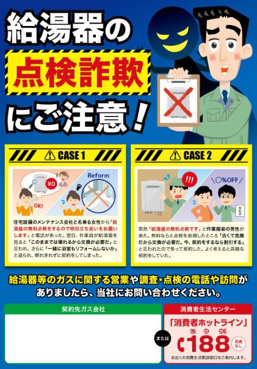 近頃は給湯器の点検詐欺が横行しており、消費者自身による自衛も必要となってきます。